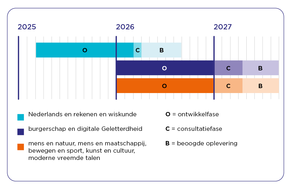 Bekijk de volledige planning in de factsheet Ontwikkeling leerlijnen.